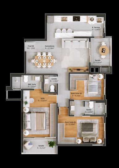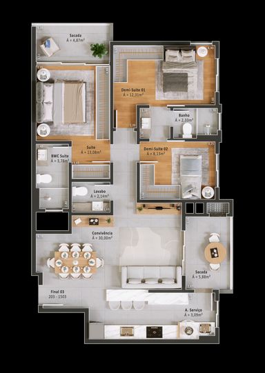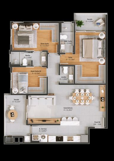 🛏️ Plantas inteligentes com 3 dormitórios (1 suíte + demi-suítes) e suíte master com sacada