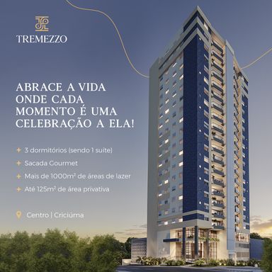 O Residencial Tremezzo é o lugar perfeito para quem busca conforto, praticidade e lazer completo. Com 04 apartamentos por andar e uma planta inteligente de 125 m² privativos, ele entrega amplitude e bem-estar em cada detalhe.