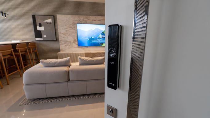 Fechadura digital com senha na porta de entrada