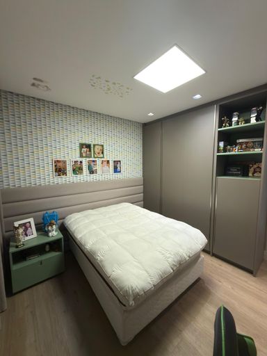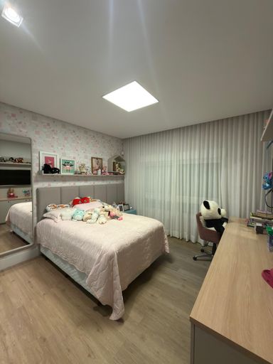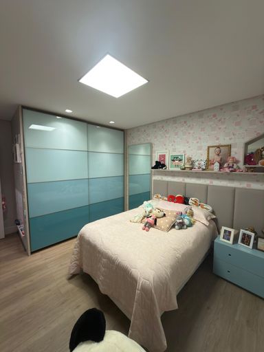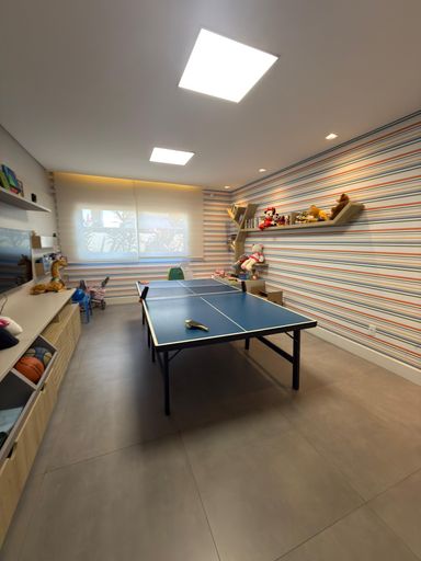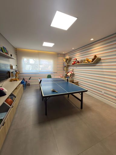 Um dos dormitórios da área gourmet foi adaptado em brinquedoteca, agregando ainda mais funcionalidade ao imóvel.