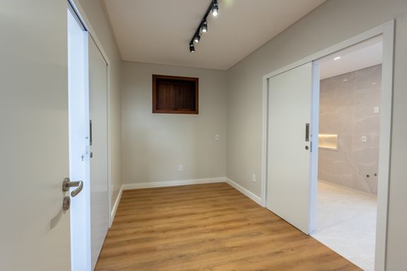 -Suíte master com varanda mirante, closet com acesso direto à sala de