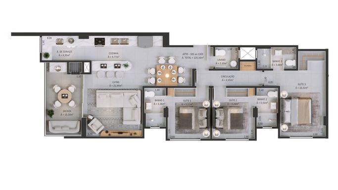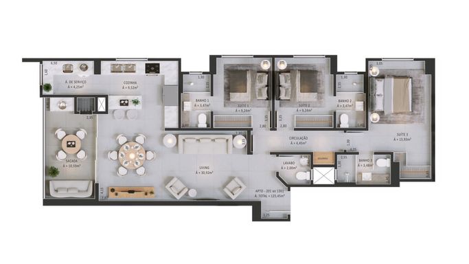 📐 125 m² de área privativa