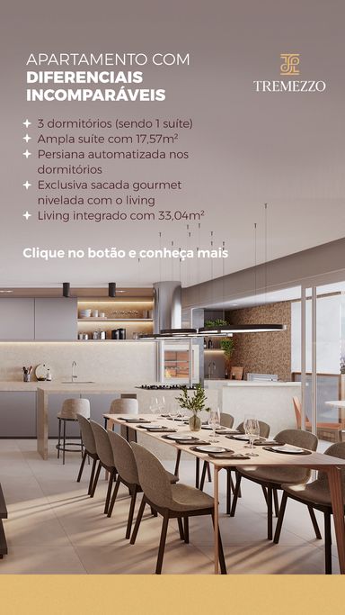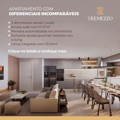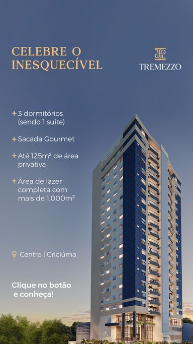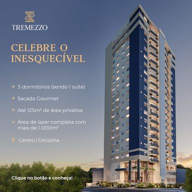 O Residencial Tremezzo é o lugar perfeito para quem busca conforto, praticidade e lazer completo. Com 04 apartamentos por andar e uma planta inteligente de 125 m² privativos, ele entrega amplitude e bem-estar em cada detalhe.